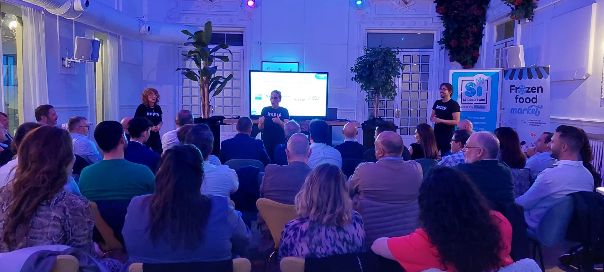 La actividad arrancó la noche del 12 de noviembre con la presentación oficial de las novedades del Frozen Food Market 2026, que tendrá lugar en Sevilla los días 20 y 21 de Enero, en un encuentro previo que sirvió para acercar a los asistentes la magnitud del mayor evento nacional del sector, reforzando el mensaje común que guía todas nuestras acciones: Sí al Congelado, acompañado de un espectáculo de improvisación que sirvió para salir de la rutina diaria.